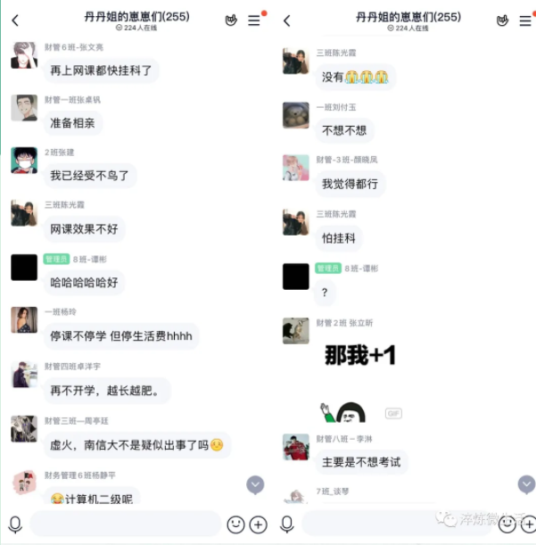 年级会的尾声来临,同学们自由发言,畅谈学习生活现状。大家十分关心的开学问题,张丹老师表示与大家等待学校的官宣,并叮嘱同学们要主动地回顾课程学习、配合任课教师教学。如果大家在上课过程中遇到问题困难要及时向任课老师或者辅导员反馈,同时在没课的时候适当进行课外学习,例如学车、课外兴趣等,争取将假期的价值发挥到极致。一时间QQ群直播的氛围大改专业分析及安全教育时的严肃认真,仿佛回到了线下年级会时的活泼风趣。
