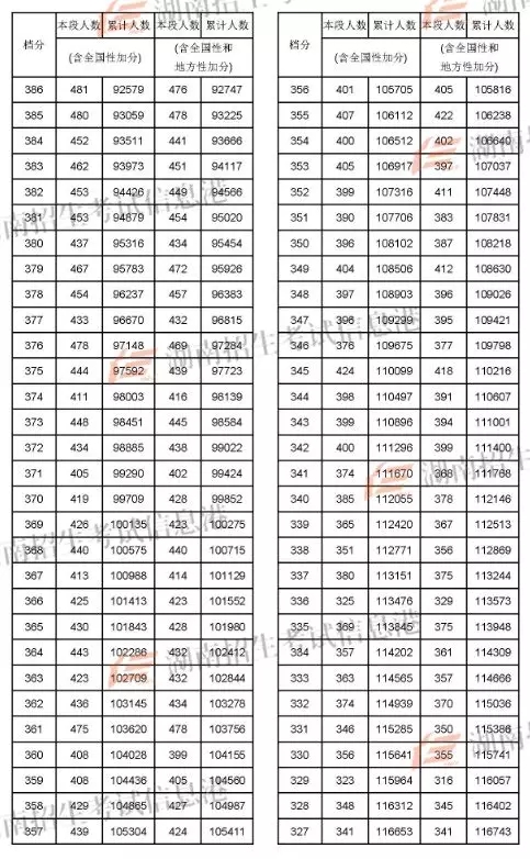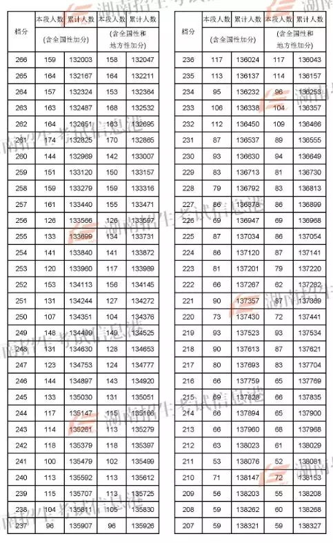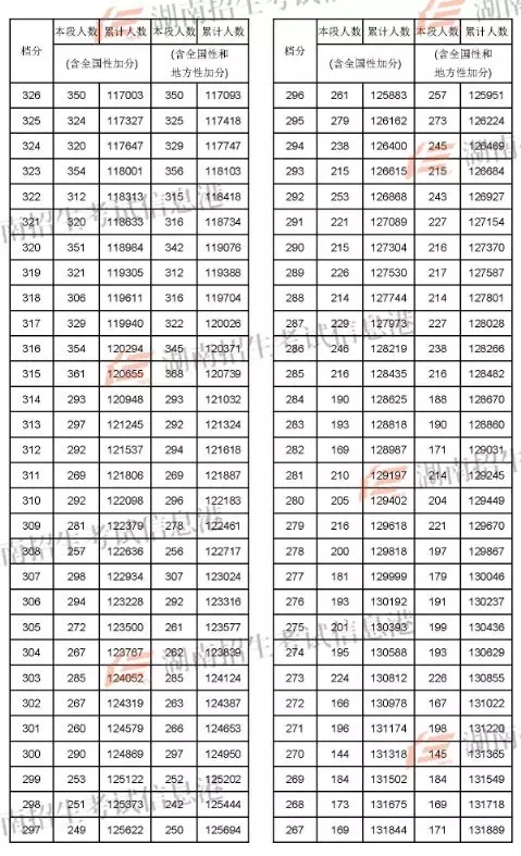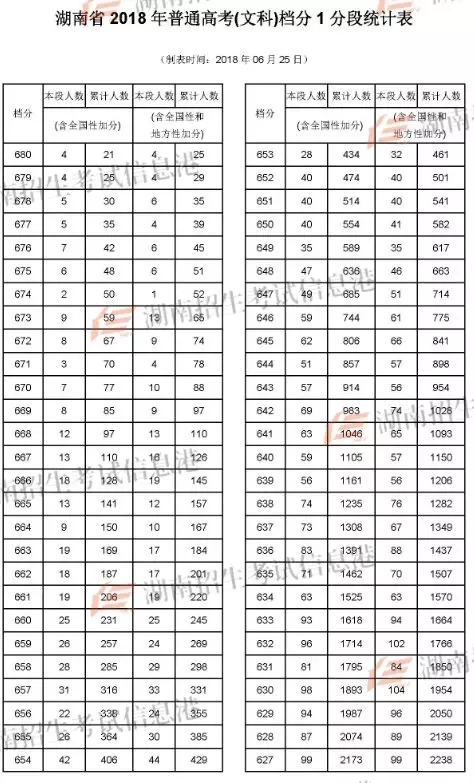 2018年湖南高考成绩分段统计表(文史)