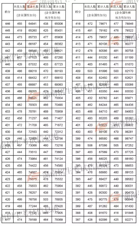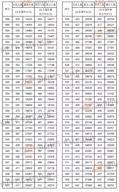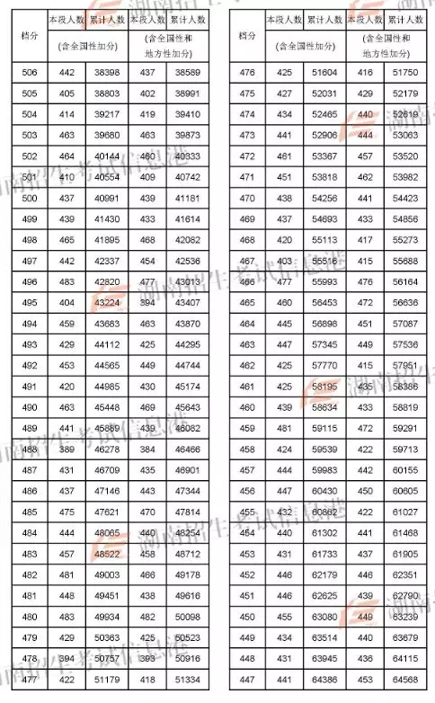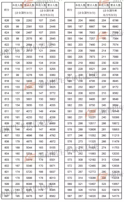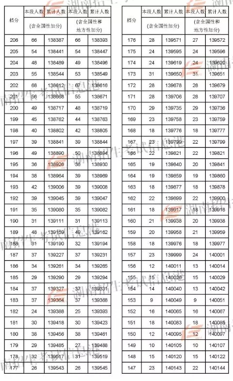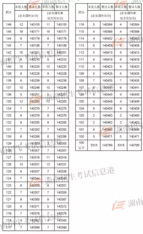 2018年湖南高考成绩分段统计表(文史)