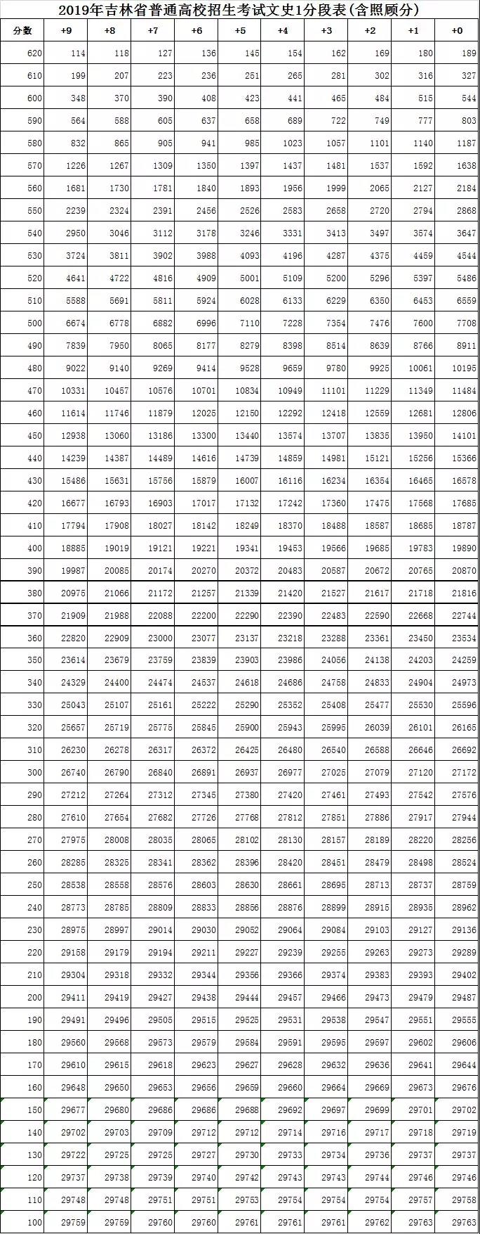 2019年吉林高考成绩一分一段表(文)