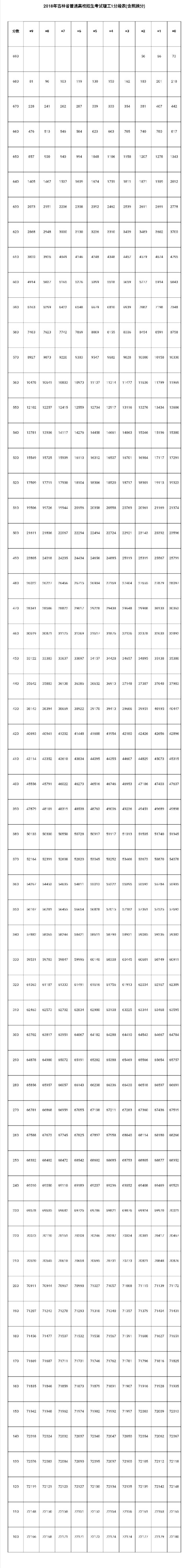 2018年吉林高考成绩一分一段表(理)