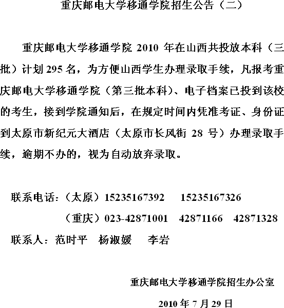 山西招生公告(二)
