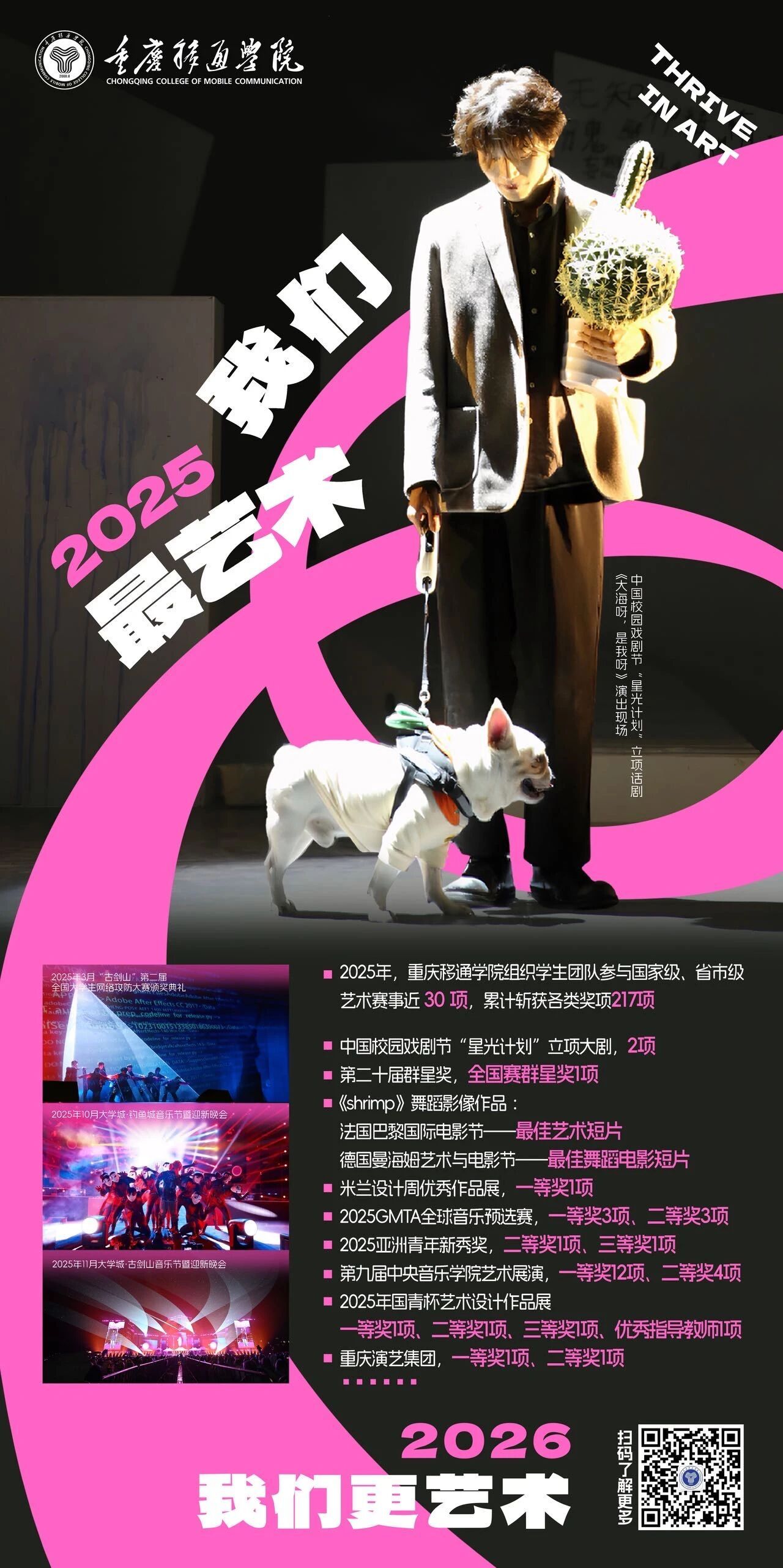 在重庆移通学院,艺术教育承载着滋养学子成长、连接传统与时代、融通本土与世界的深远使命。学校将“艺术修养与实践”深植育人体系,以原创为魂、学生为中心、实践为径,打通多元育人通道,搭建了全方位艺术成长阶梯,致力于培养兼具文化自信与国际视野的新时代人才。2025年,在重庆移通学院这片创意热土上的艺术教育,实现了跨越式发展,在赛事突破、活动创新等维度交出精彩答卷,书写着立德树人的生动篇章。