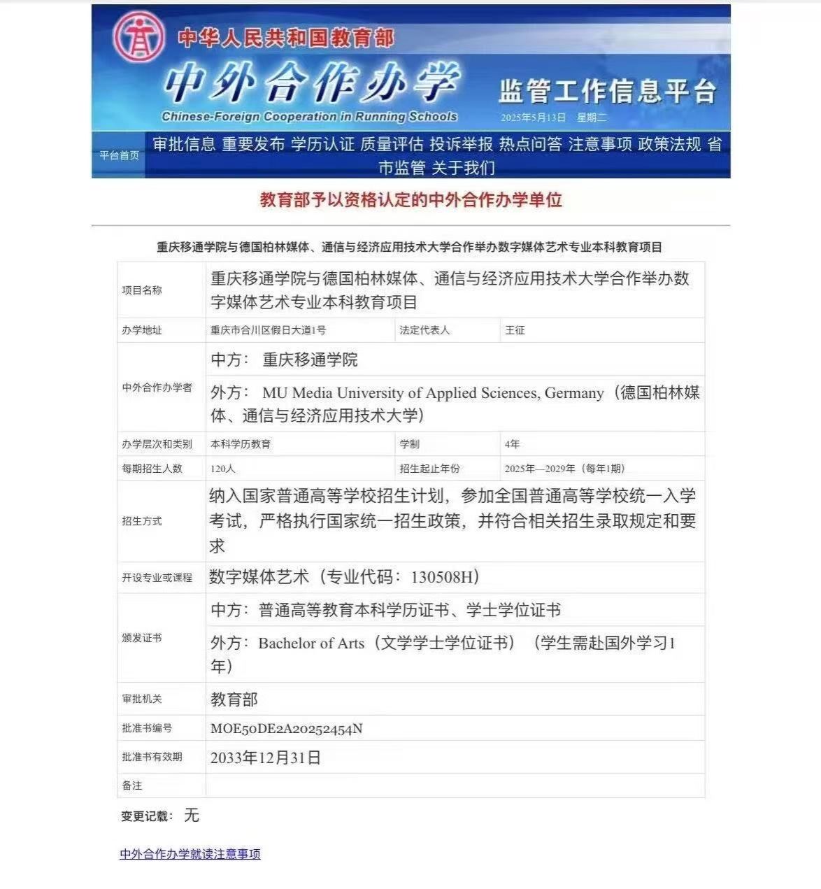 ·与德国柏林媒体应用技术大学合作举办数字媒体艺术项目获批,成为全国唯一拥有三个中德合作办学项目的高校