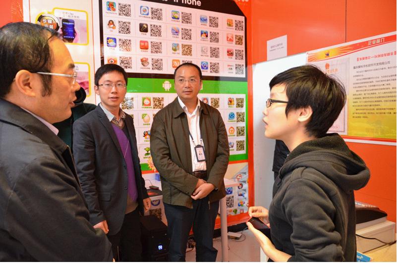 黄波局长一行参观了我校微型企业示范街内的重庆臻善创意广告有限公司、重庆摩科手机软件开发有限公司等大学生微型企业和孵化团队,并与团队负责人进行了深入沟通,认真了解了微型企业补贴、各微型企业团队人数、投入资金、带动就业人数、市场拓展等基本情况。