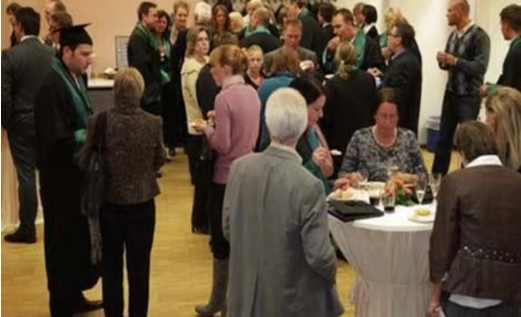 ◑经常组织总部在北威州的德国大型跨国企业集团人力资源部,通过跟学生见面的冷餐会等交流形式,也为学生创造实习和就业的良好平台;
