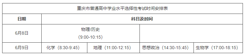 普通高中学业水平选择性考试科目由我市自主命题,考试时间安排在6月8日上午和6月9日全天,每科考试时长均为75分钟。